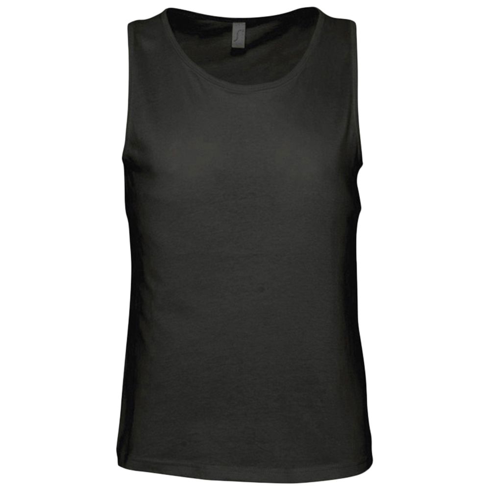 Кроеная мужская майка из полугребенного хлопка. Горловина и проймы обработаны укрепляющей резинкой.