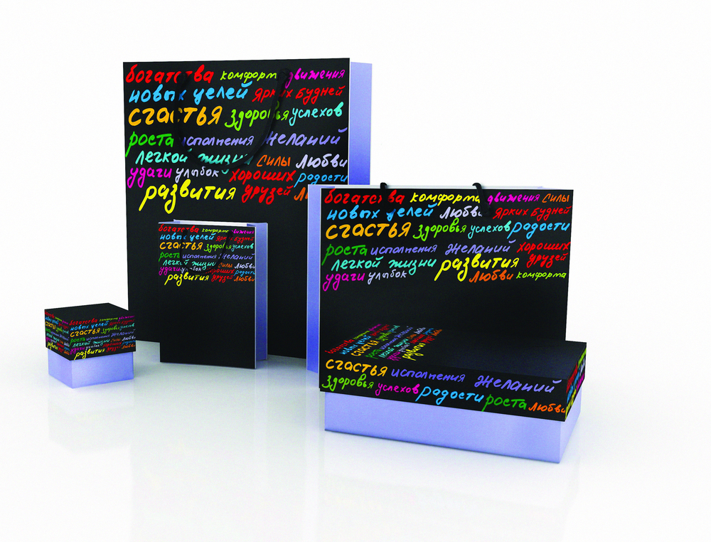 Подарочная коробка совмещает в себе функции упаковки и открытки: на ней уже написаны всевозможные пожелания. Коробка изготовлена с применением лучших полиграфических технологий и заламинирована. На свободном от декора черном поле можно разместить логотип компании, текст или рисунок.Возможные способы и стоимость нанесения логотипа предоставляются по запросу.