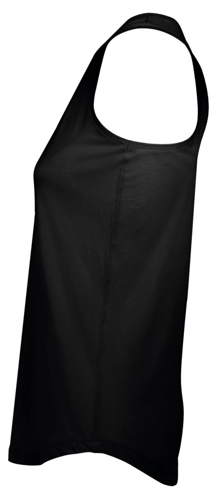Женственная, приталенная и одновременно свободная модель. Закругленный низ изделия, глубокий вырез на спине («борцовская» спинка). Отделка выреза и пройм обтачкой из джерси. Тонкое джерси высшего качества, гребенной хлопок.