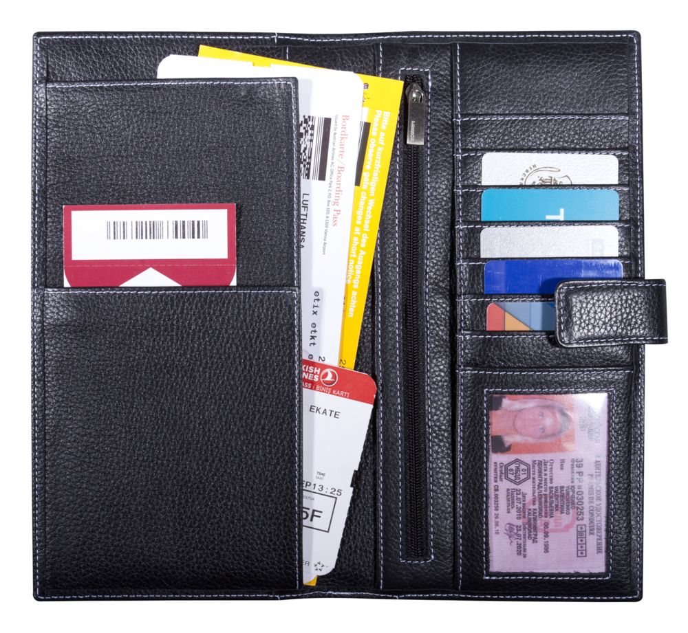 Дорожный органайзер — очень удобный предмет для путешественников. Паспорт, билеты, посадочные талоны, кредитные карты — все помещается в стильный дорожный футляр.