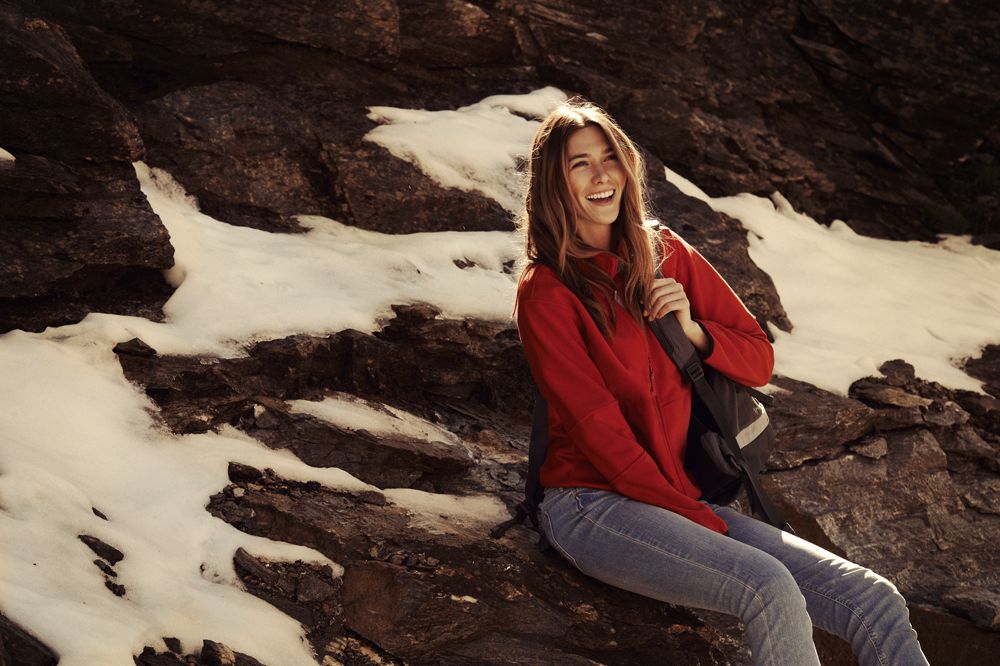 Женская влагоустойчивая и ветрозащитная куртка-толстовка из мембранной ткани. Материал имеет антипиллинговую обработку (против катышков), вставки из материала с рельефной фактурой в рукавах и в боках изделия расположены в местах, подвергающихся наибольшей нагрузке, что обеспечивает дополнительную защиту от появления катышков. Нижний край изделия и края рукавов отделаны эластичной черной тесьмой. Карманы застегиваются на молнию. Приталенный силуэт.