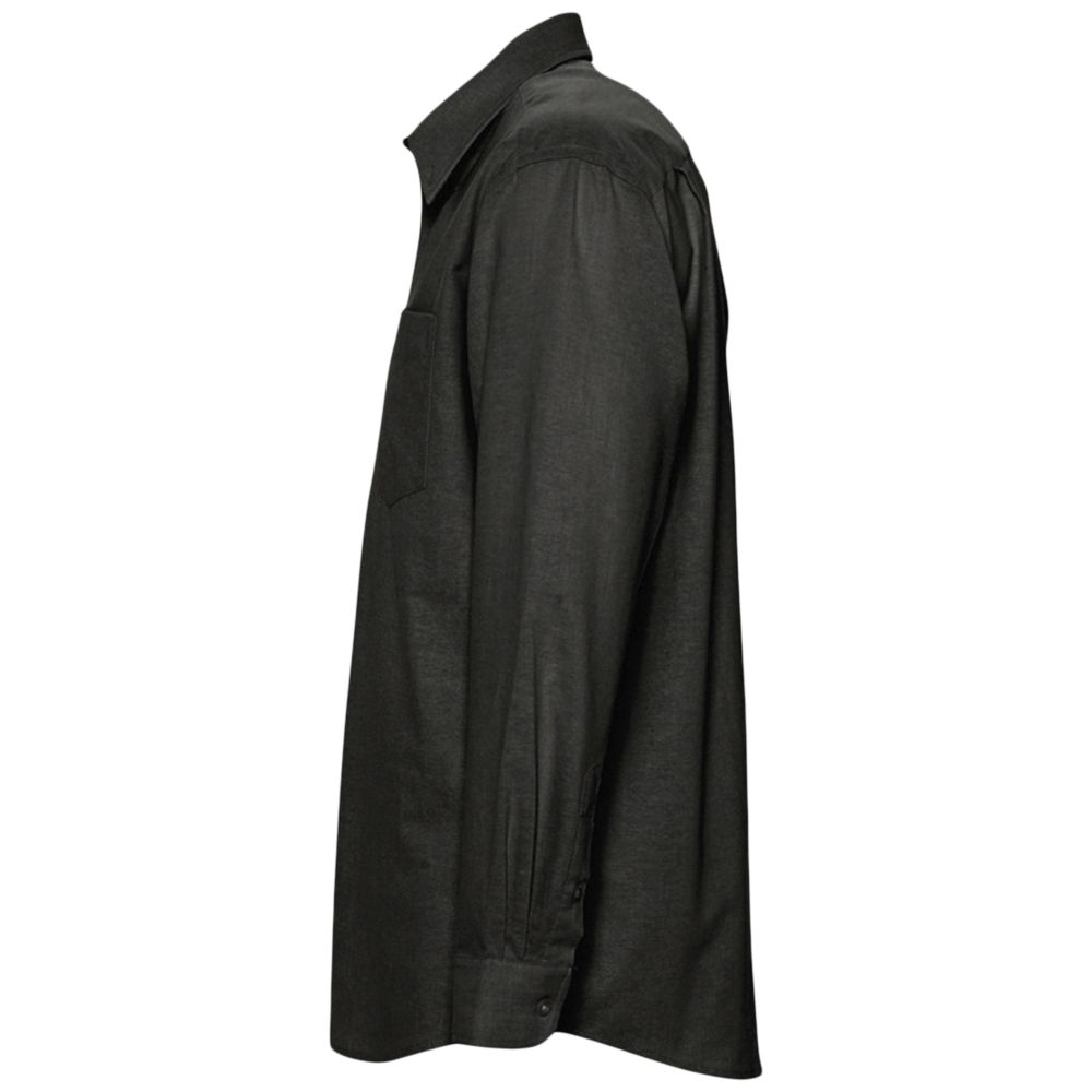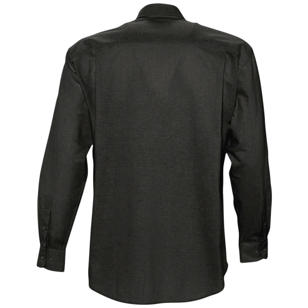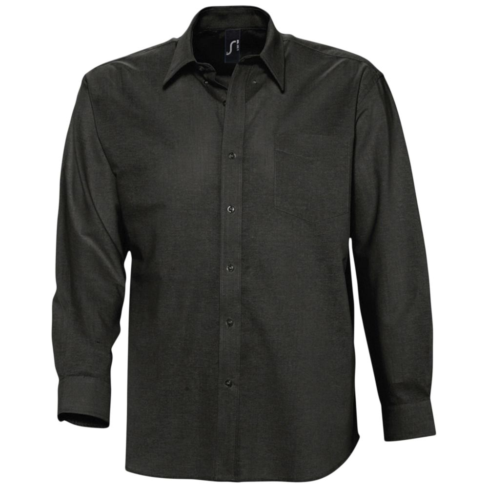 Рубашка из ткани «Оксфорд» с нагрудным карманом слева. На спинке две симметричные складки, воротник на двух пуговицах, регулируемые манжеты, планка с семью пуговицами в тон.