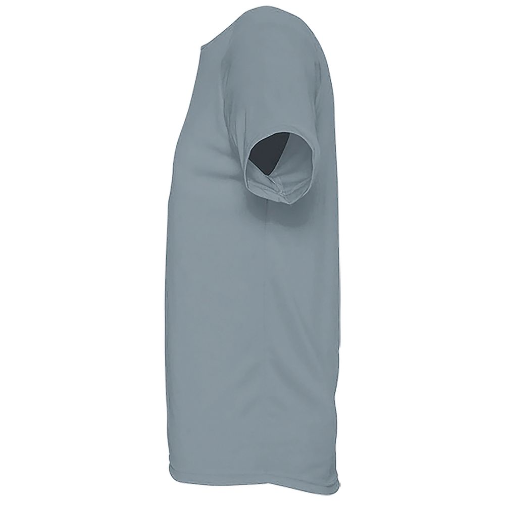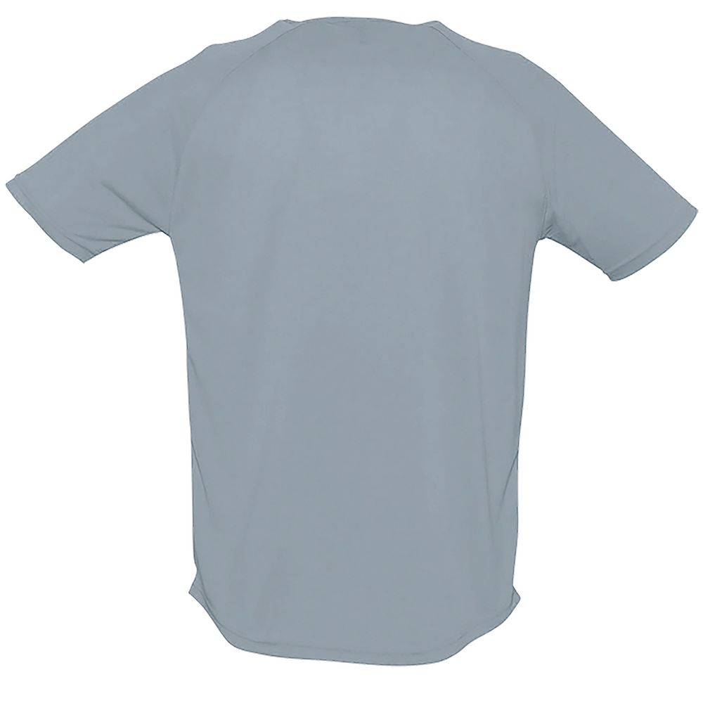 Футболка из спортивной сетки с рукавом реглан. Низ изделия и низ рукавов с двойной отстрочкой.