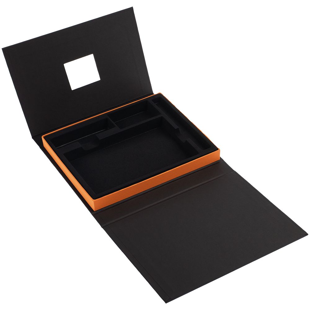 Коробка выполнена из переплетного картона, кашированного дизайнерской бумагой Malmero, с двумя створками на магнитах.