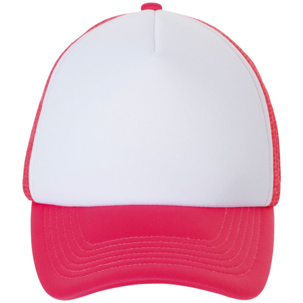 Бейсболка с 5 клиньями из сетки. Поролон в переднем клине (5 мм) и козырьке (3 мм). Регулируемая пластиковая застежка.