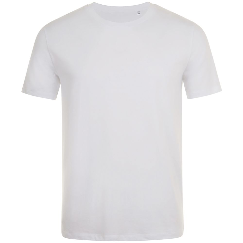 Кроеная мужская футболка с круглой горловиной. Ворот в тонкую резинку с укрепляющей тесьмой. Облегающий силуэт.