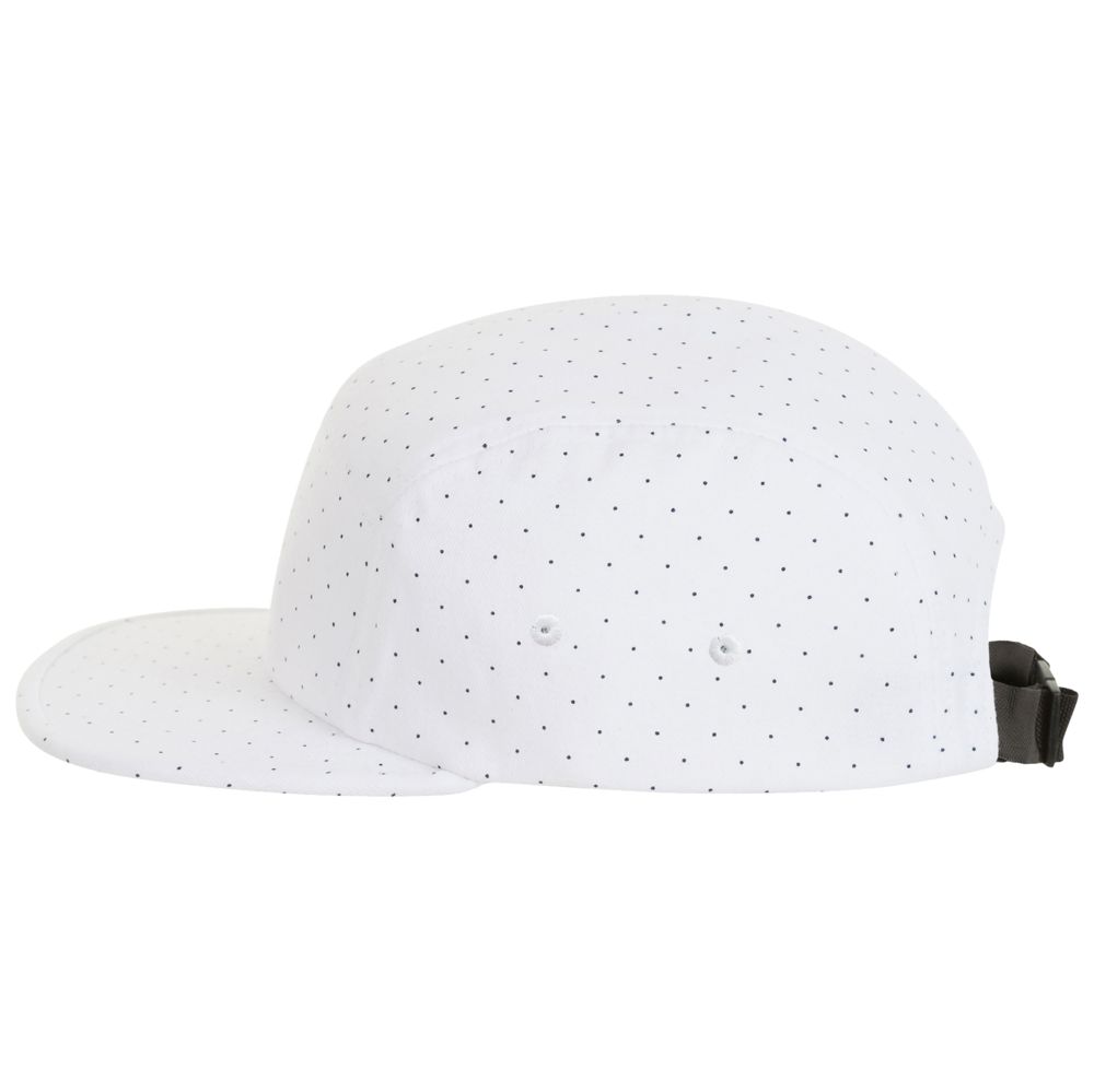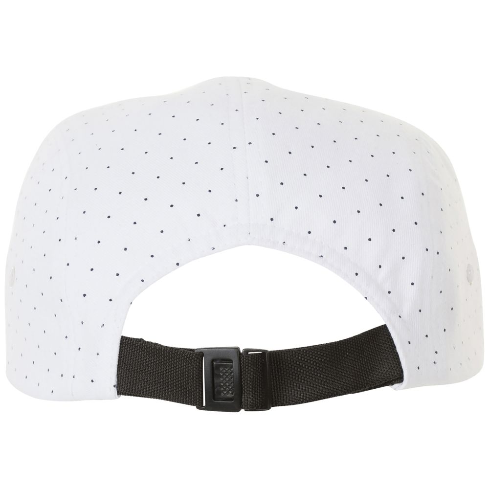 Плоский козырек, 4 вышитых отверстия для вентиляции, регулируемая пластмассовая застежка сзади.