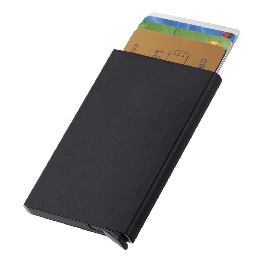Футляр с выдвижным механизмом имеет защиту RFID. Вмещает 6 карточек.