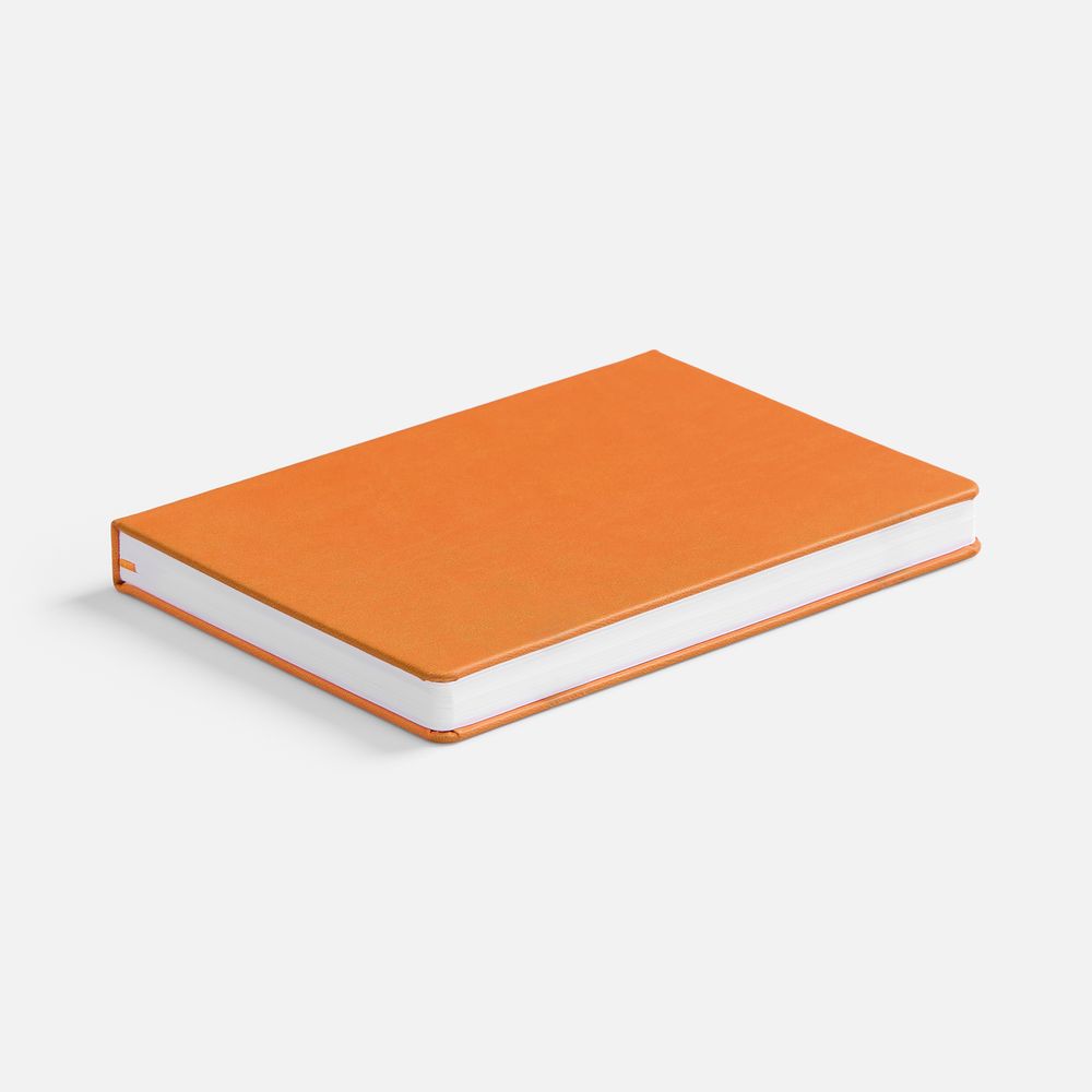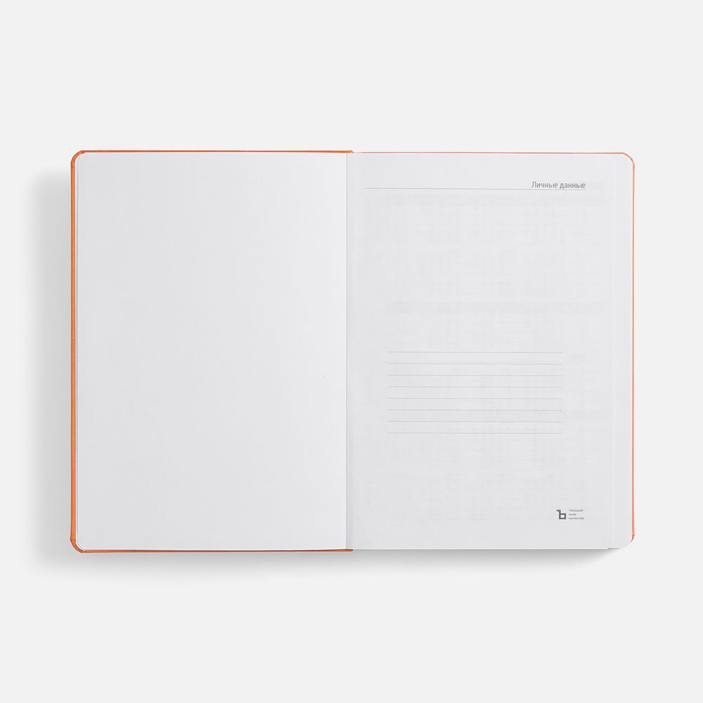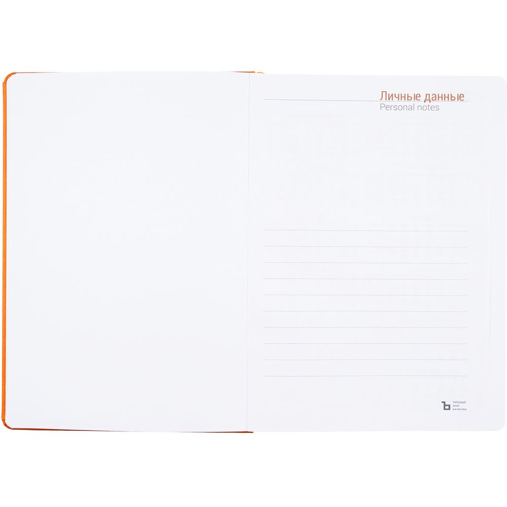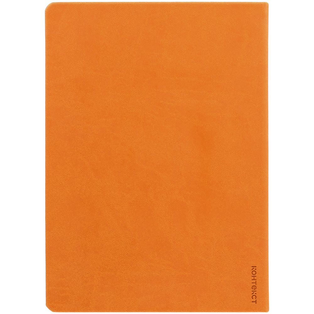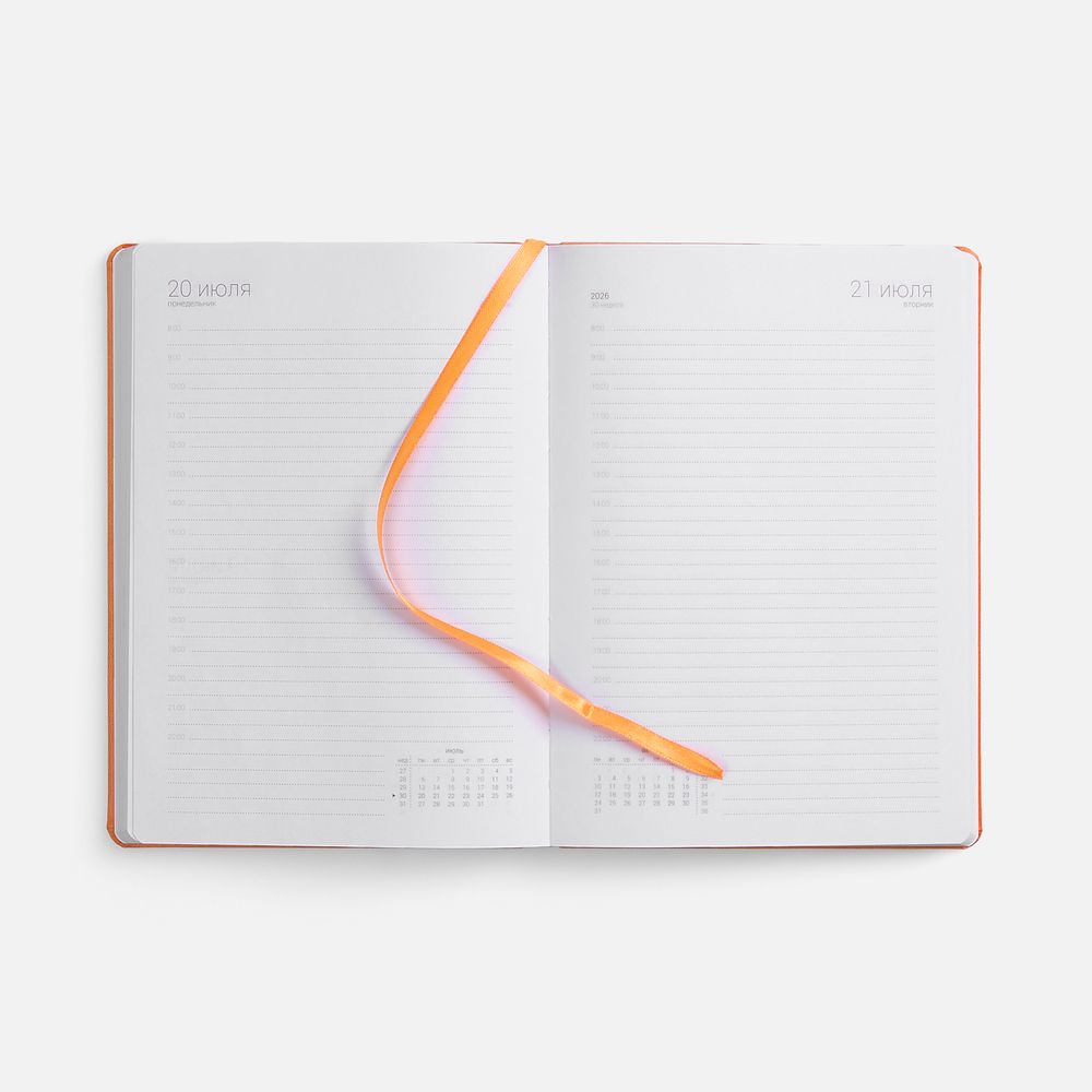 Ежедневник с твердой обложкой, выполнен из материала Latte, оранжевый ОО, дополнен ляссе в цвет обложки.