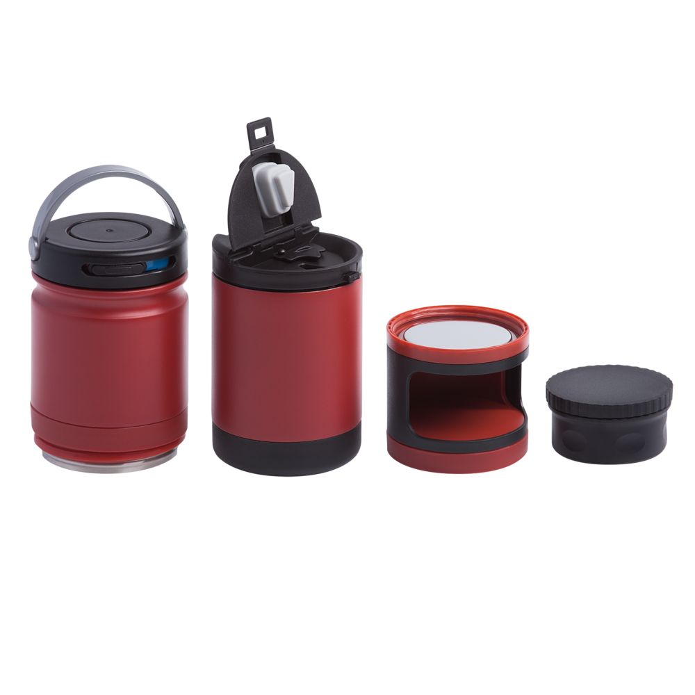 • комбинированный термостакан с двумя отделениями под разные напитки и контейнером для хранения;