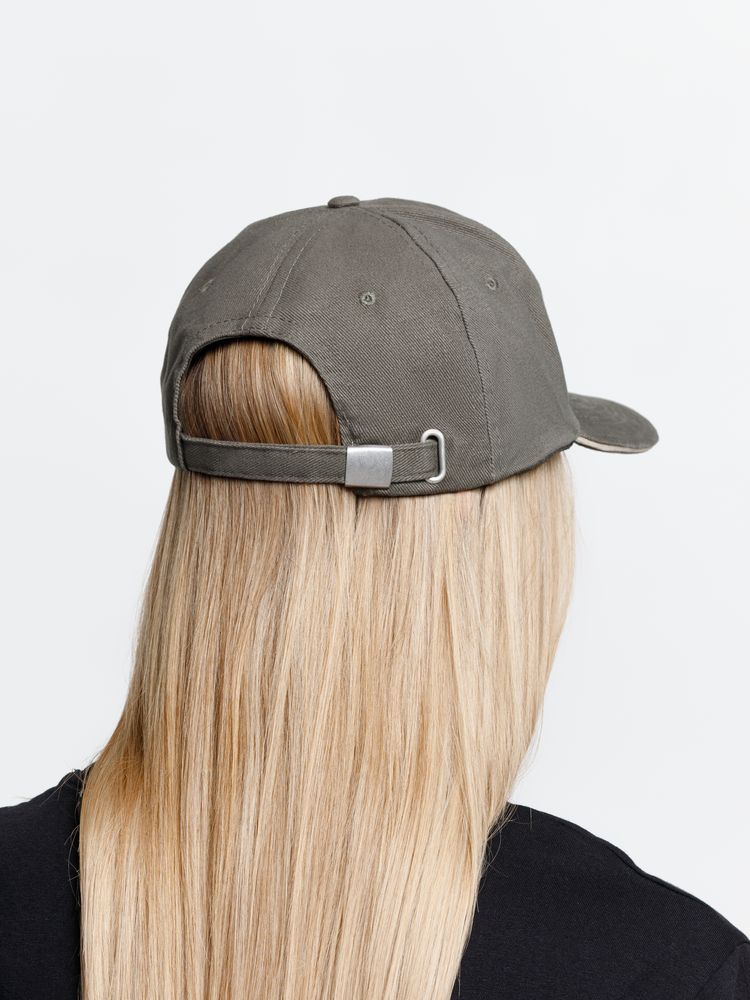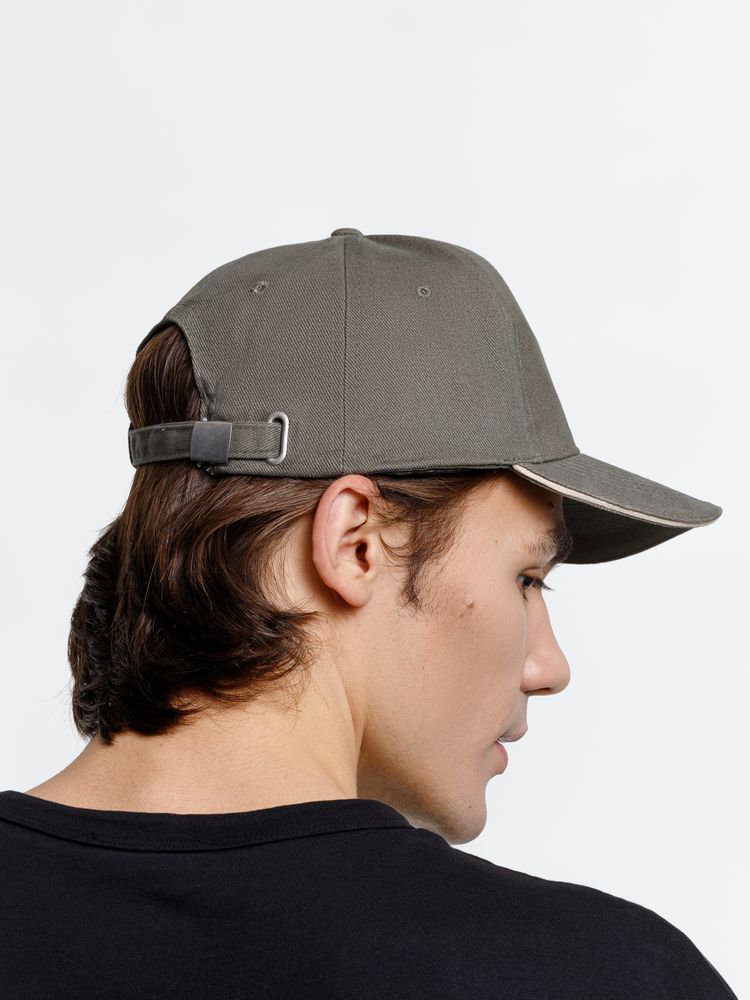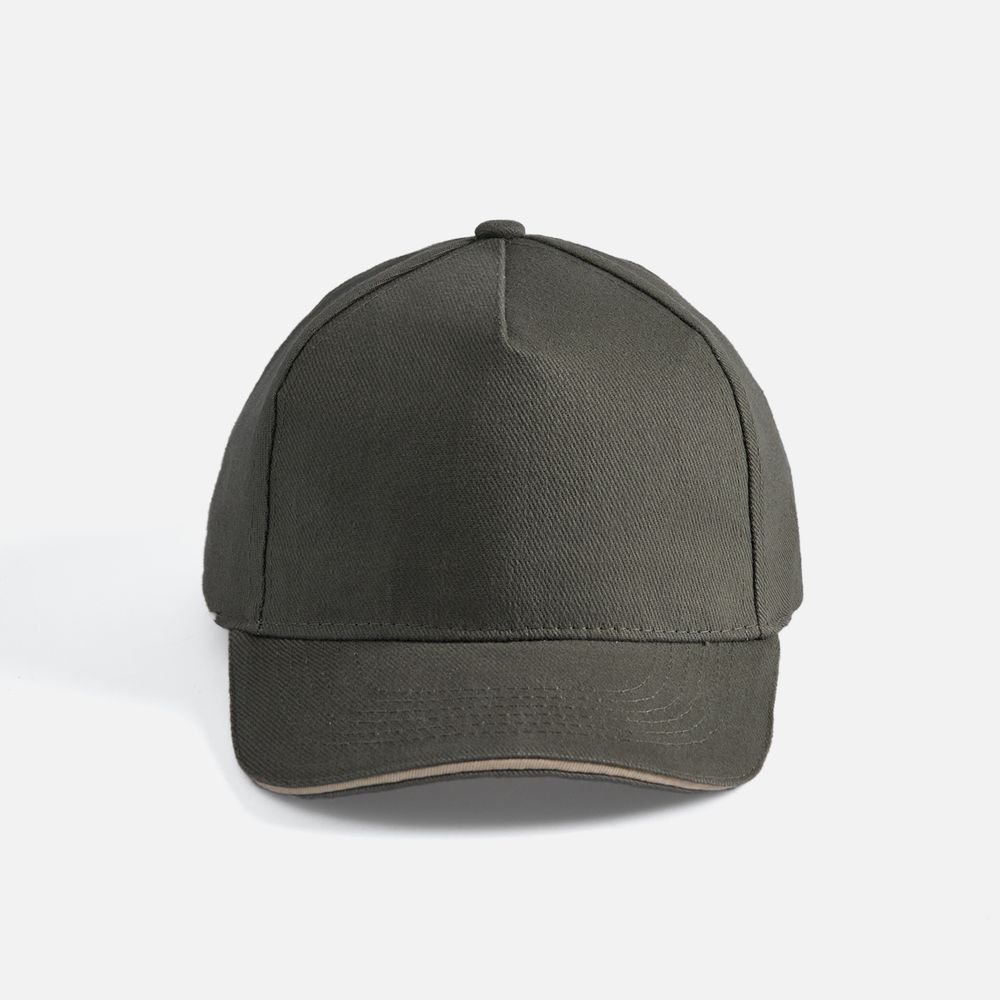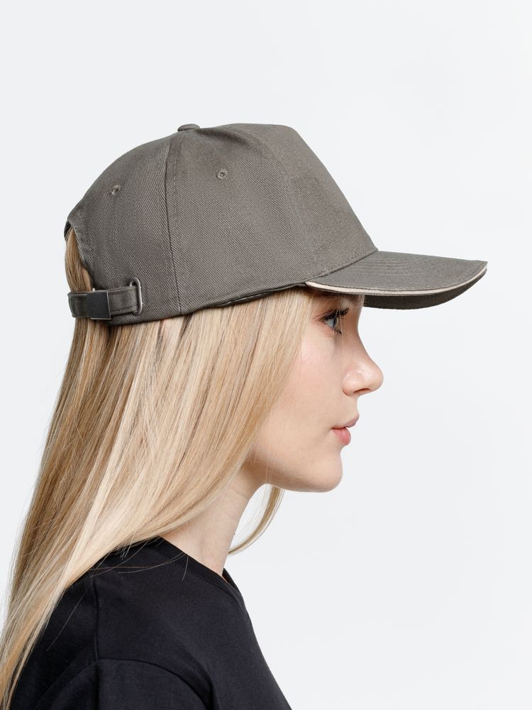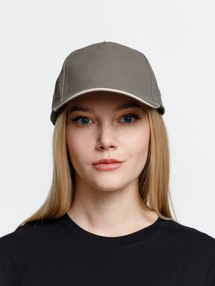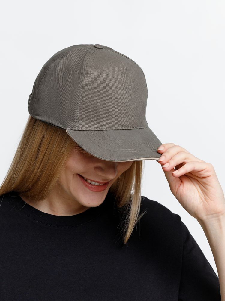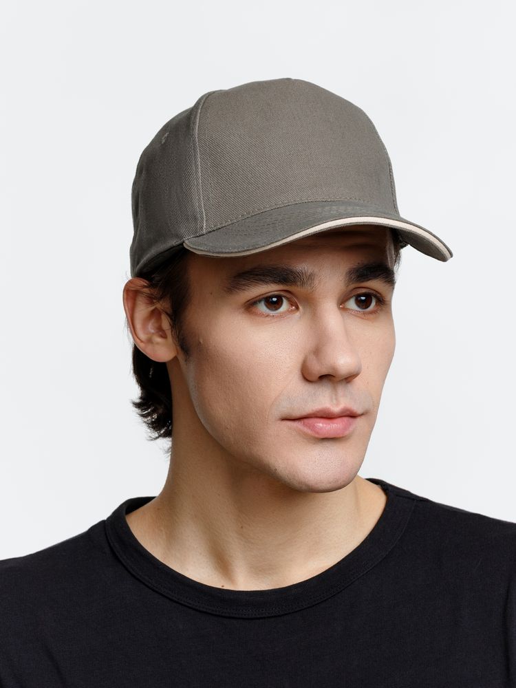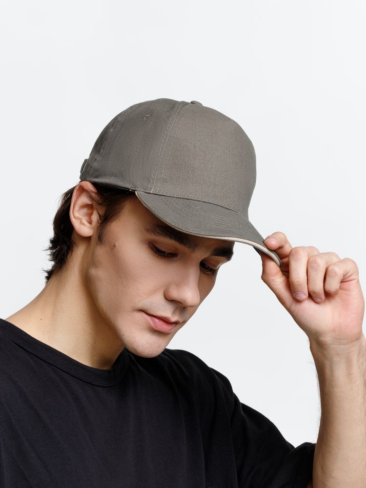 Модель бейсболки с 5-ю клиньями без лобового шва из плотного чесаного хлопка.