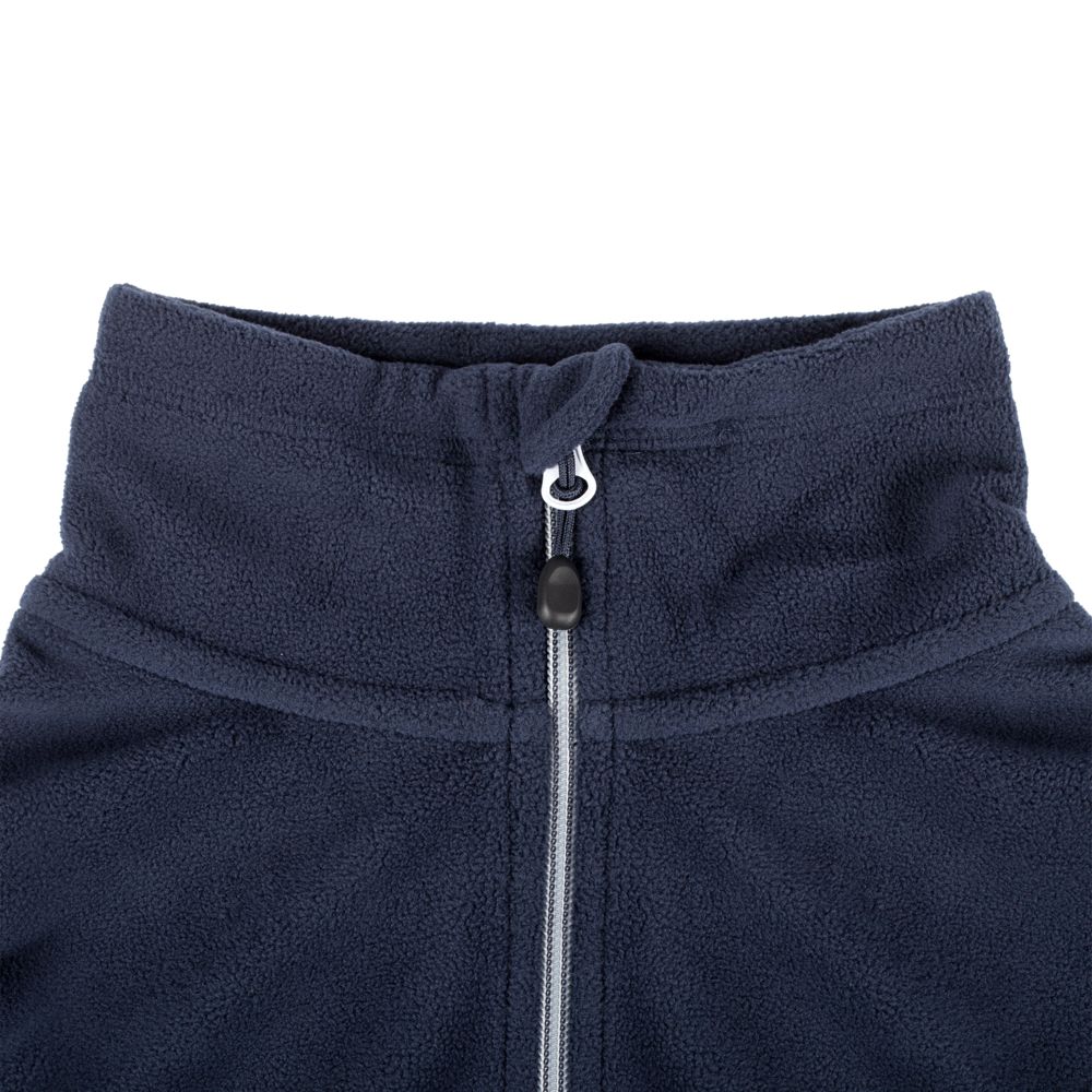Толстовка из микрофлиса. Передние карманы на молнии, манжеты и низ куртки на тонкой резинке, застежка-молния контрастного цвета.