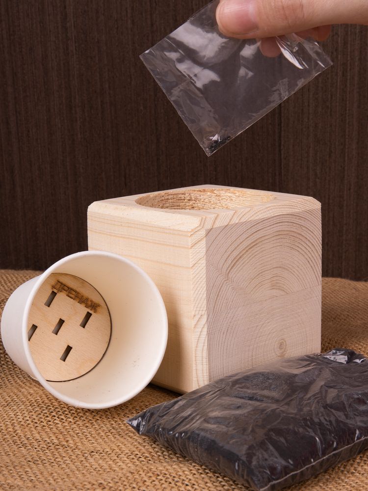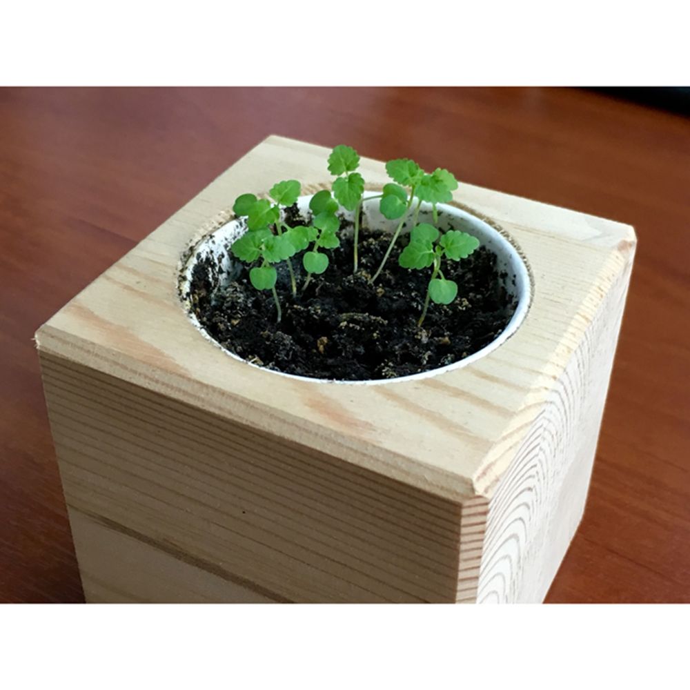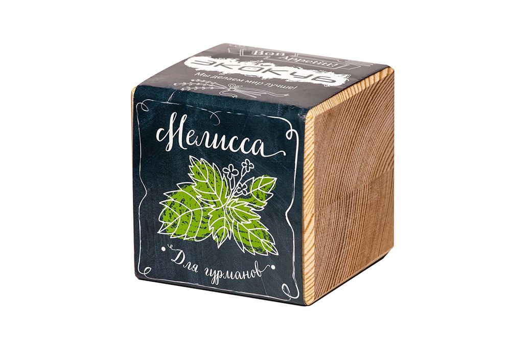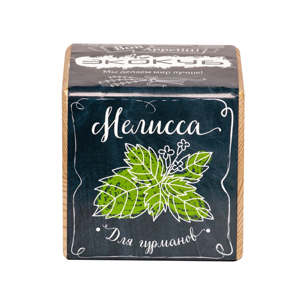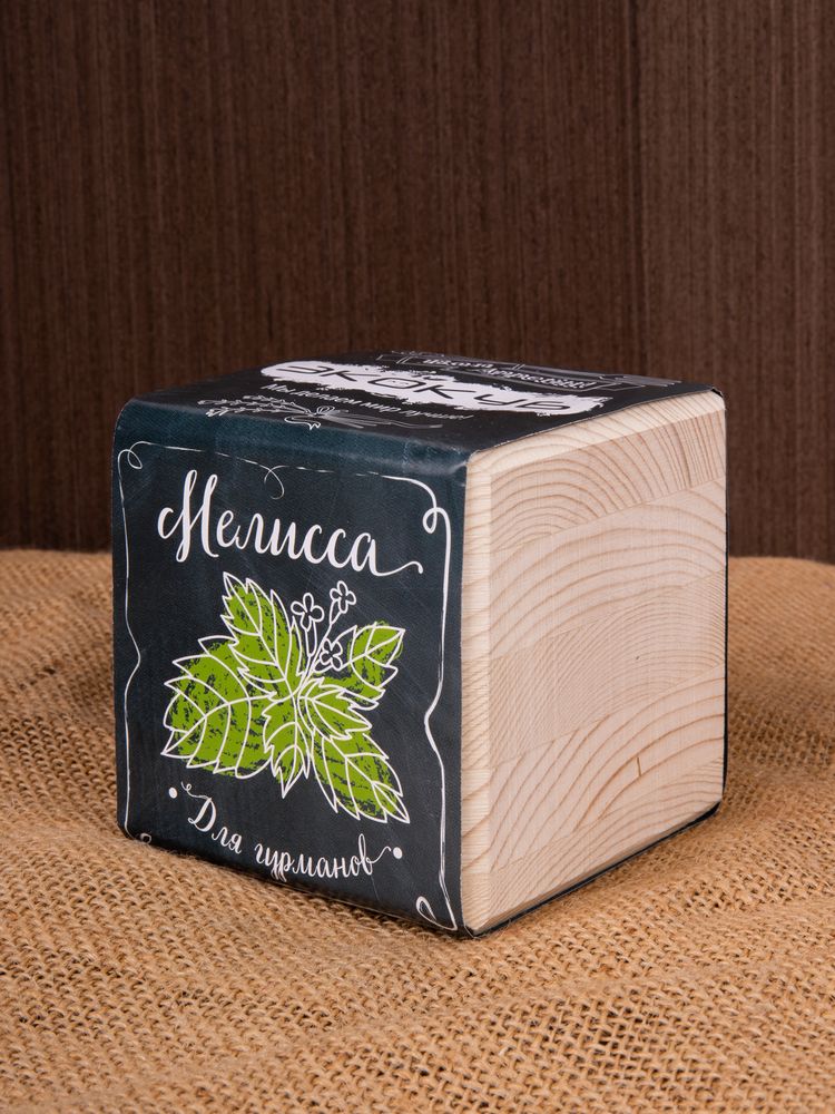 В наборе: деревянный куб, грунт, семена мелиссы.