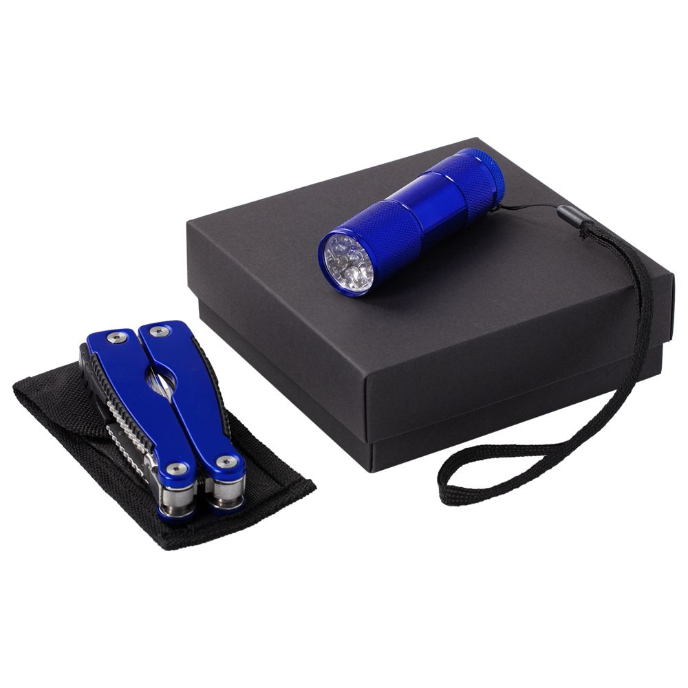 фонарик - алюминий; мультитул: инструменты - нержавеющая сталь; рукоятки - алюминий; чехол - полиэстер; коробка - картон